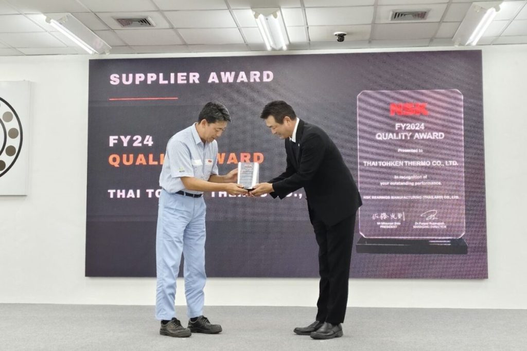 Thai Tohken Thermal Co., Ltd. was honored with the FY2024 Quality Award from NSK Bearings Manufacturing (Thailand) Co., Ltd. at the Supplier Conference on July 15, 2025.