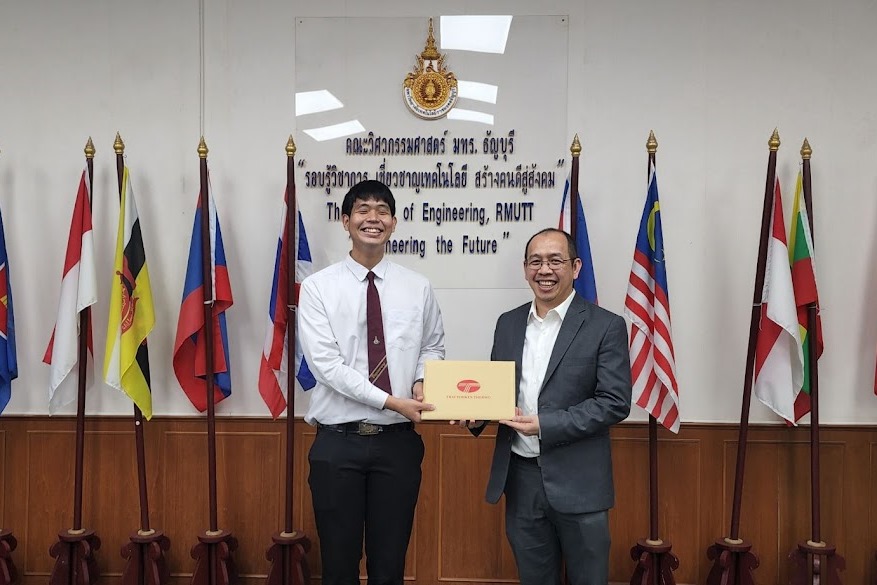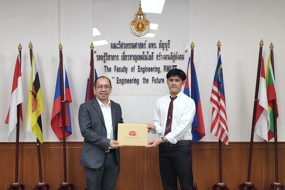 เมื่อวันที่ 5 เมษายน 2566 ดร.นิพนธ์ ทวีจันทร์ รองกรรมการ พร้อมคณะ มอบทุนการศึกษาบริษัท ไทยโตเคน เทอร์โม จำกัด ประจำปีการศึกษา2566 ทุนละ 50,000 บาท จำนวน 2 ทุนการศึกษา ให้กับนักศึกษาคณะวิศวกรรมศาสตร์ มหาวิทยาลัยเทคโนโลยีราชมงคลธัญบุรี ผู้ได้รับทุนการศึกษาในครั้งนี้ได้แก่ นาย ศกานต์ เส็งสุวรรณ์ (นักศึกษาชั้นปีที่ 3 สาขาวิชา วิศวกรรมโพลิเมอร์) และ นาย อภิสิทธิ์ ตั้งวิรุฬห์ (นักศึกษาชั้นปีที่ 3 สาขาวิชา เกษตรอุตสาหกรรม) ขอแสดงความยินดีกับนักศึกษาที่ได้รับทุนการศึกษาในครั้งนี้