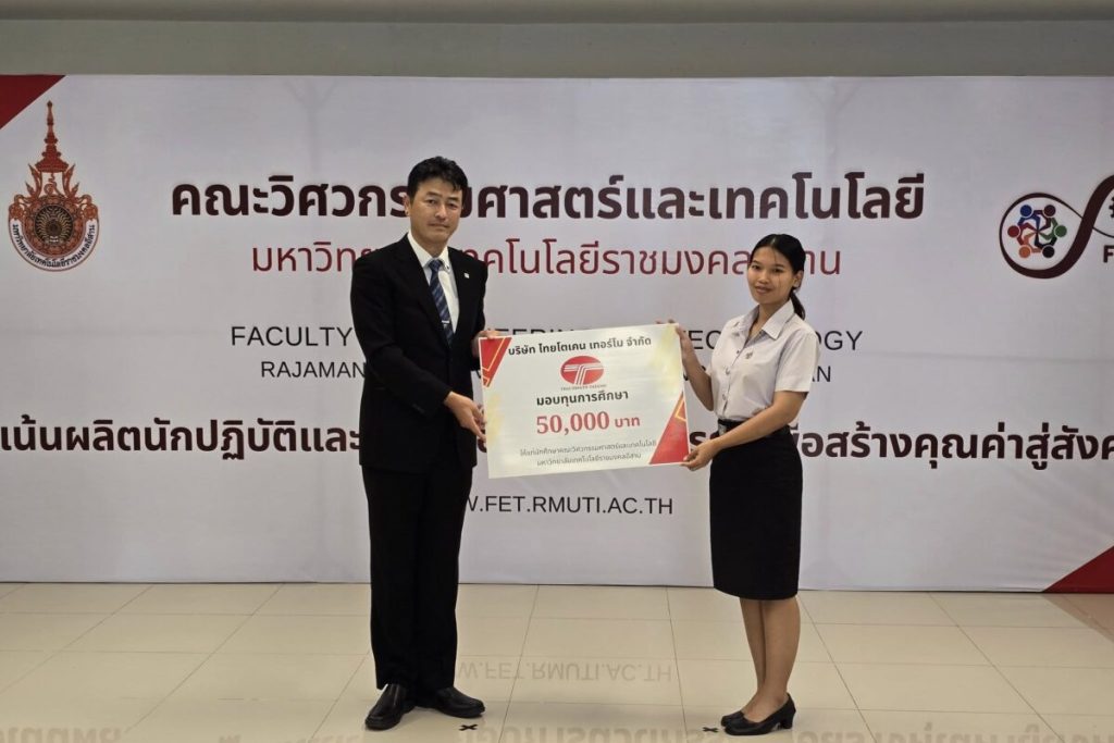 เมื่อวันที่ 6 กุมภาพันธ์ 2568 นำโดย Mr. Hiroshi Okuda กรรมการผู้จัดการ บริษัท ไทยโตเคน เทอร์โม จำกัด มอบทุนการศึกษา จำนวน 4 ทุน ให้กับนักศึกษาคณะวิศวกรรมศาสตร์และเทคโนโลยี มหาวิทยาลัยเทคโนโลยีราชมงคลอีสาน นครราชสีมา เพื่อสนับสนุนการศึกษาและพัฒนาศักยภาพของนักศึกษาให้มีความพร้อมต่อการเป็นบุคลากรคุณภาพในสายงานวิศวกรรมและเทคโนโลยี