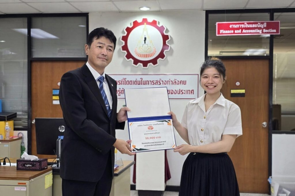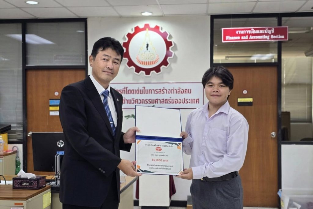 เมื่อวันที่ 6 กุมภาพันธ์ 2568 บริษัท ไทยโตเคน เทอร์โม จำกัด โดย Mr. Hiroshi Okuda กรรมการผู้จัดการ มอบทุนการศึกษา 3 ทุน ให้กับนักศึกษาคณะวิศวกรรมศาสตร์ มหาวิทยาลัยเทคโนโลยีสุรนารี เพื่อส่งเสริมโอกาสทางการศึกษาและสนับสนุนการพัฒนาบุคลากรด้านวิศวกรรมศาสตร์ ซึ่งถือเป็นโครงการที่ดำเนินมาอย่างต่อเนื่องเป็นปีที่ 17