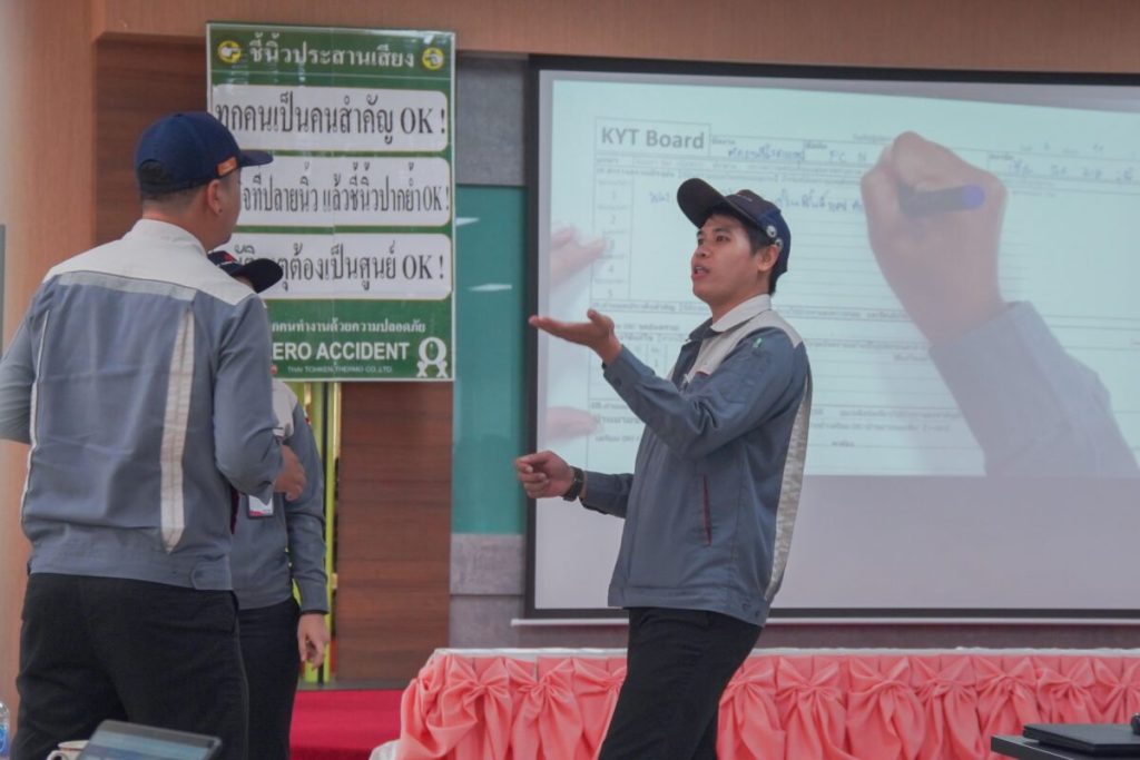 กิจกรรม KYT (ย่อมาจาก Kiken Yochi Training หรือ การฝึกอบรมการคาดการณ์อันตราย) เป็นวิธีที่มีประสิทธิภาพในการป้องกันอุบัติเหตุและส่งเสริมความปลอดภัยในการทำงาน ขอชื่นชมผู้เข้าร่วมทุกท่านที่แสดงให้เห็นถึงความตั้งใจและความใส่ใจในประเด็นความปลอดภัย และขอแสดงความยินดีกับผู้ที่ได้รับรางวัลในครั้งนี้อีกครั้ง